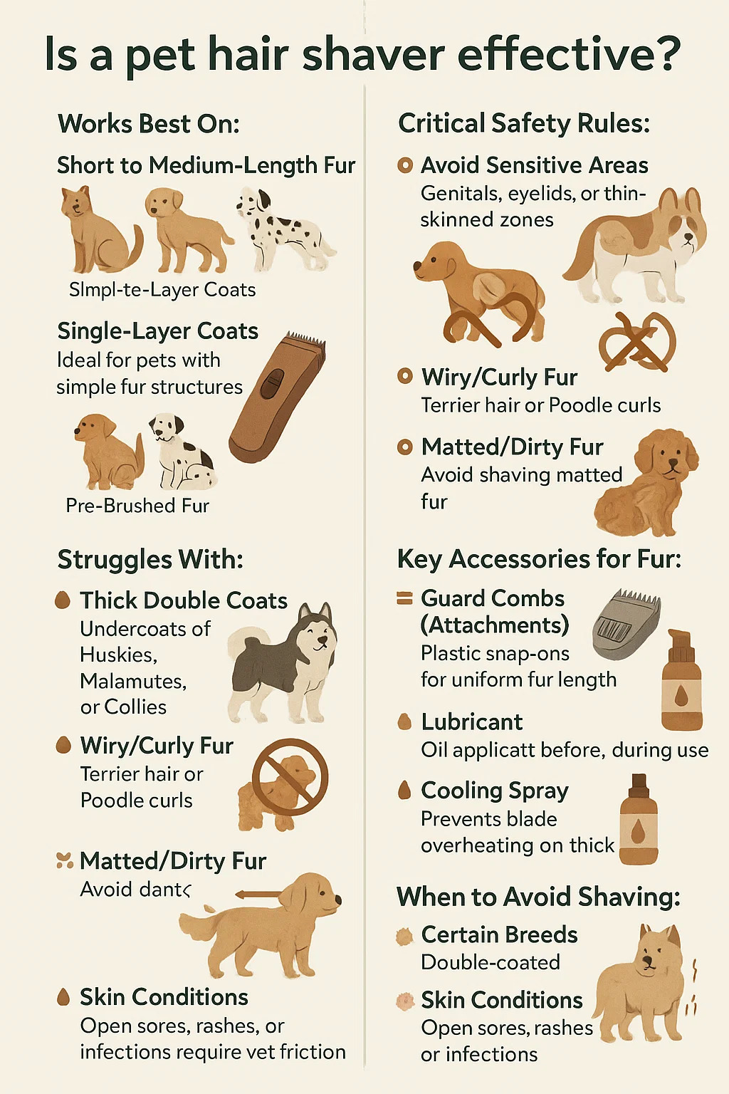 Ja, een Haarscheerapparaat voor huisdieren (Ook wel huisdier of trimmers genoemd) is specifiek ontworpen om te werken aan dierenbont, maar effectiviteit hangt af van bonttype, gereedschapskwaliteit en techniek. Hieronder is een gedetailleerde uitsplitsing: