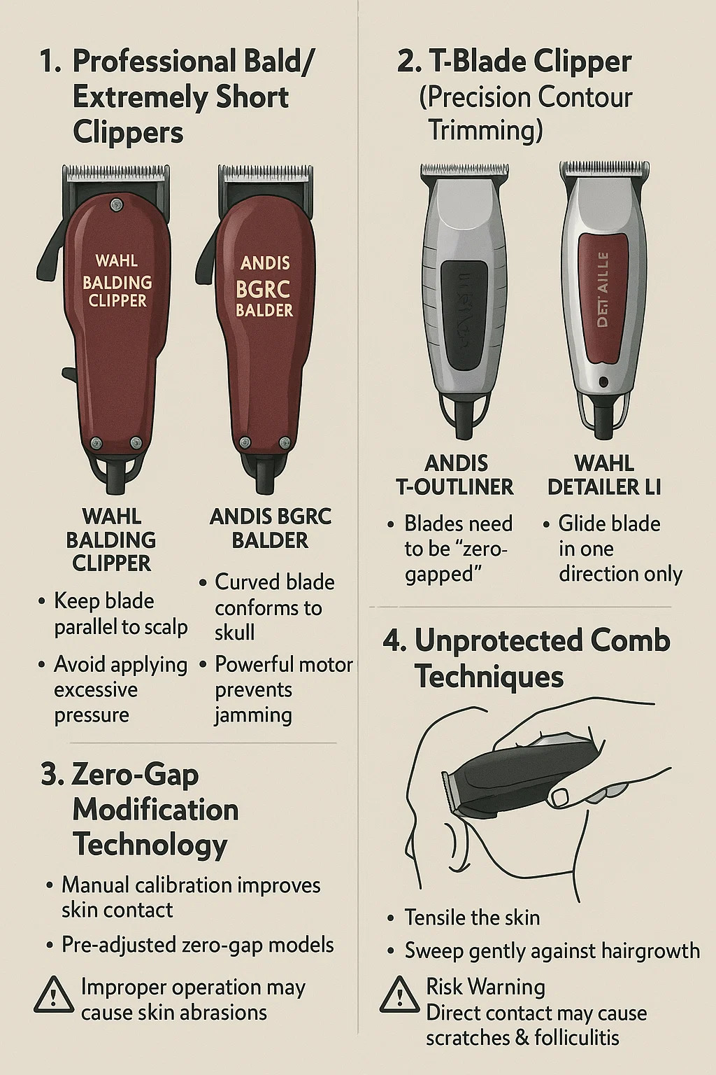 Geschikte scenario's: Alleen aanbevolen voor gebieden met gladde haarlijnen, bakkebaarden, enz., of voor ervaren personen die volledige kaalheid op het hoofd stylen.